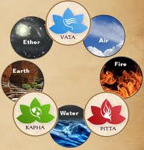 In Ayurvedic Medicine there are three metabolic body                                                       types associated with the fiveimages elements of ether (space), air, fire, water, and earth. Each of us is born with what is our natural Dosha constitution, in which our physical selves will have one or two dominant Doshas. During times of illness, disease, and mental or emotional stress our natural constitution becomes imbalanced. The word Dosha दोष means defect or flaw and refers to the five flaws of human nature: lust, anger, greed, fear, and delusion, for these flaws can easily throw our natural healthy states into disharmony. This concept is very similar to the three roots of illness in Tibetan Buddhist Medicine.