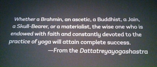 Though photographs were not allowed in the Yoga Exhibit area of the museum, the security guard allowed me to take a picture of this lovely Shastra excerpt.