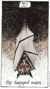 I wasn’t grossed out by seeing this mummified bat first thing in the morning. Honestly I felt a feeling of freedom. The last few years have been quite a deep journey within, and I feel ready to take off in flight, though that next step has been on hold or suspended, waiting for things to fall into place, aka divine timing. Mummification is a means to suspend decay, to suspend death and rebirth, and seeing this bat now free from the tree it must have been suspended in and able to return its old body to the Earth for new life, brought into my mind the Hanged Man from The Wild Unknown Tarot deck. The Hanged Man symbolizes suspension, but also acceptance of the current situation. Through letting go, I release and open the way for new beginnings.